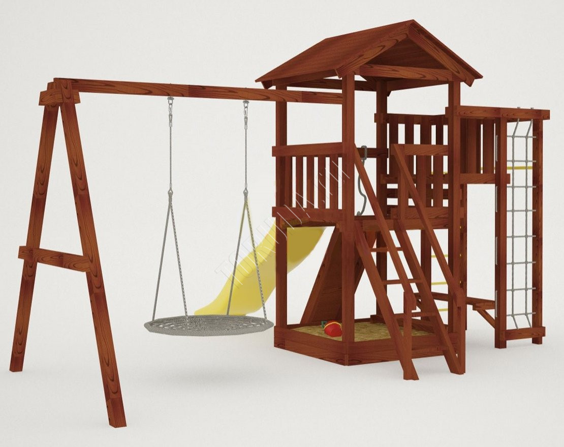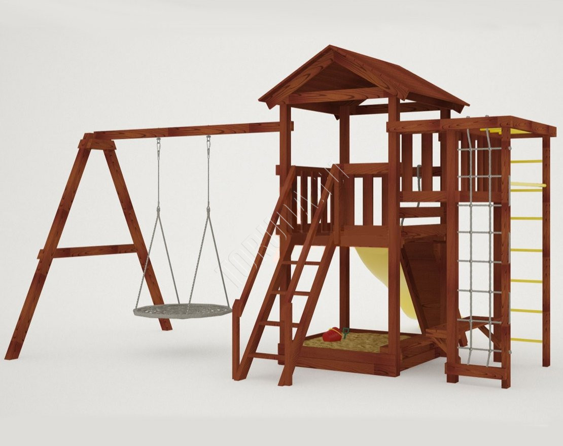 Вы можете разместить его на участке самостоятельно. Комплекс предназначен именно для улицы, поэтому установка производится всего один раз. Детская площадка подойдёт под любую погоду, конструкция не боится осадков, снега, морозов или сильного зноя.